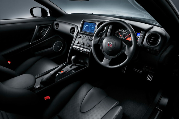 Внутри SpecV вас встретит уникальный интеръер двухместной гоночной машины – задние сидения со стандартного GT-R были убраны в целях снижения веса.  На автомобиль устанновлены специальные углепластиковые ковши от Recaro, инструментальная панель и прочие детали из углеволокна.
